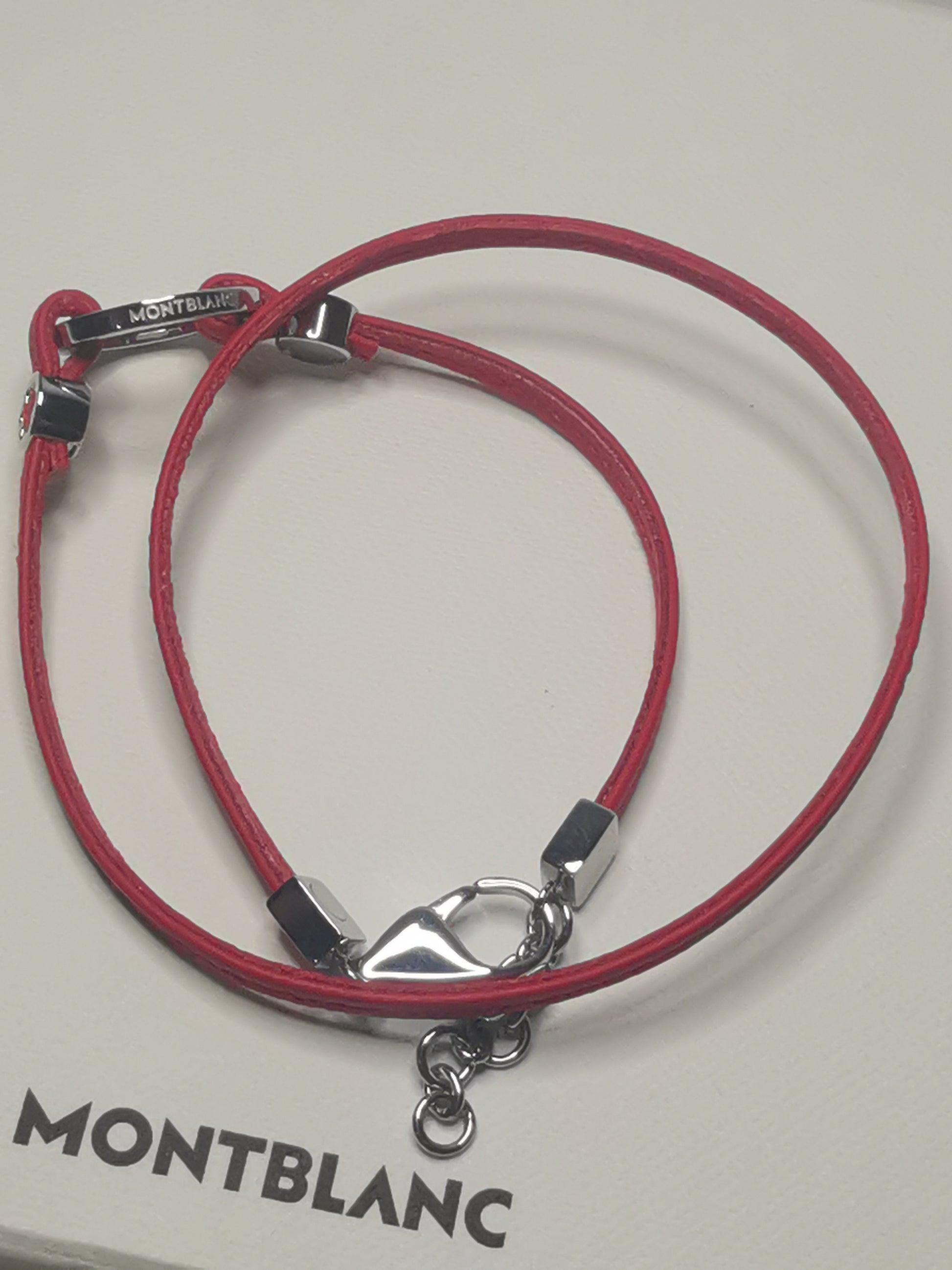 Montblanc Red Leather Double Wrap Bracelet – Stainless Steel Accents